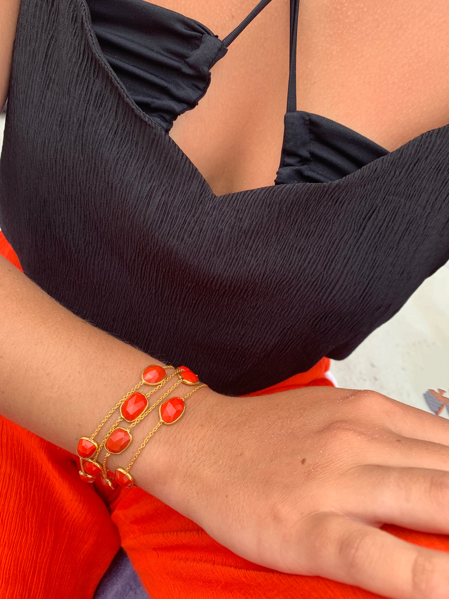 Bracelet Sassi,  4 rangs de pierres espacées sur plaqué or, une beauté de bracelet